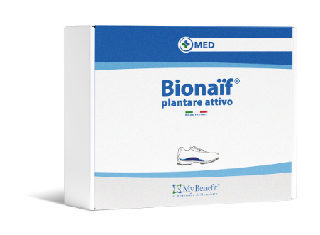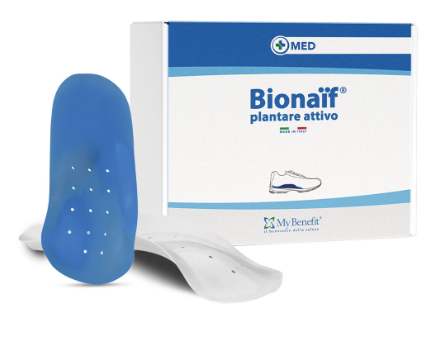 Bionaif Plantare Attivo è un plantare preformato, in polimero di resina elasticamente molto deformabile, calibrato sui chili. Grazie alla sua forma particolare si adatta a tutte le calzature senza modificarne la misura. Aiuta a migliorare la postura, distribuire correttamente il peso del corpo, favorisce la circolazione sanguigna. È un prodotto Made in Italy.